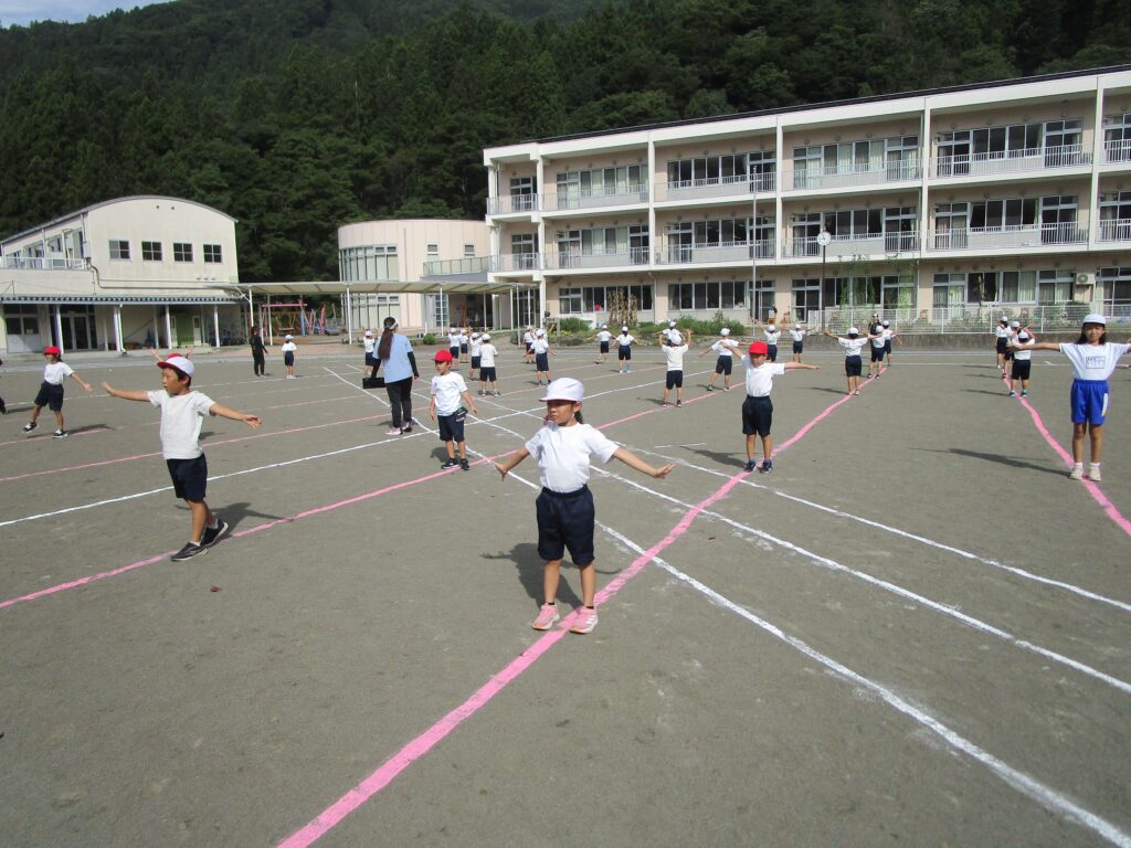 9月18日 全校ダンス 2025年9月18日 | 管理者 はじめて校庭で全校ダンスを行いました。今日は移動がメインでした。広い場所で音楽に合わせて移動してみると、思いの外、移動が忙しいことがわりました。後は位置を覚えてスムーズに移動できるようにみんなで考えていきます。