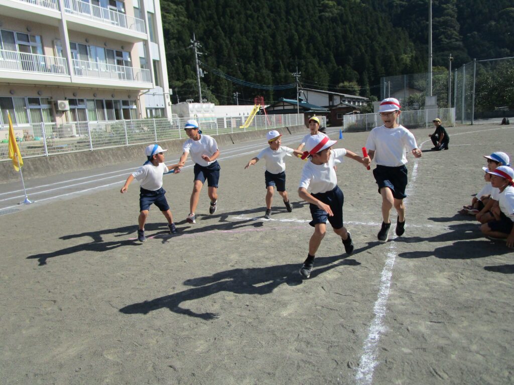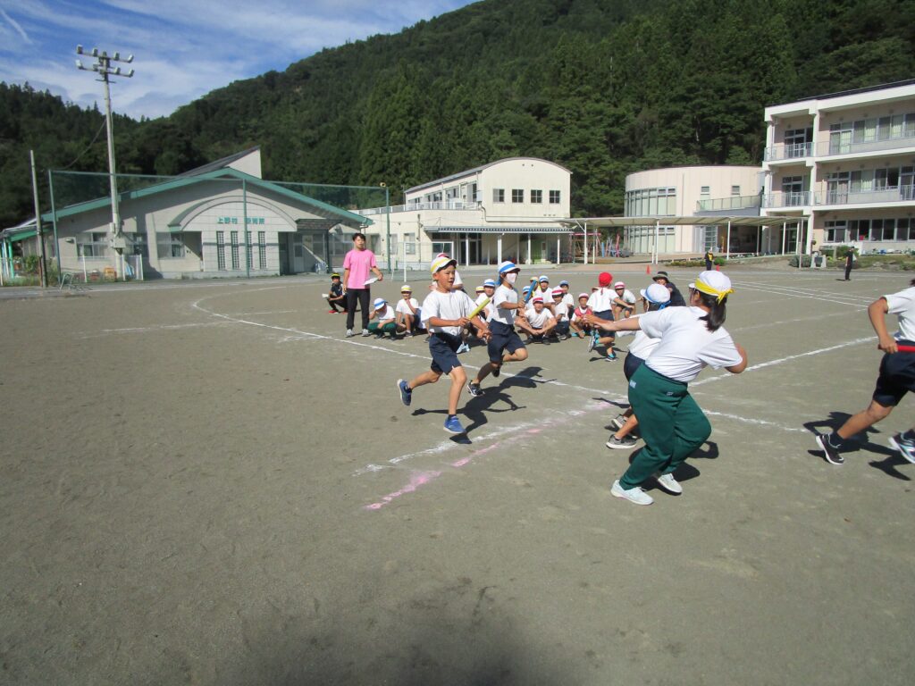 1校時は全員リレーの練習を行いました。気候もよく気持ちよい空気の中、バトンをつなぎました。入場と退場も合わせて行いました。