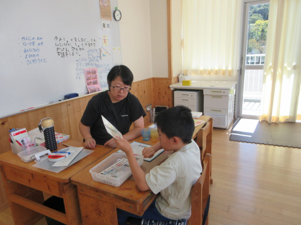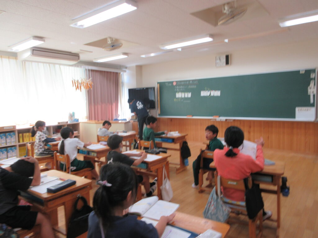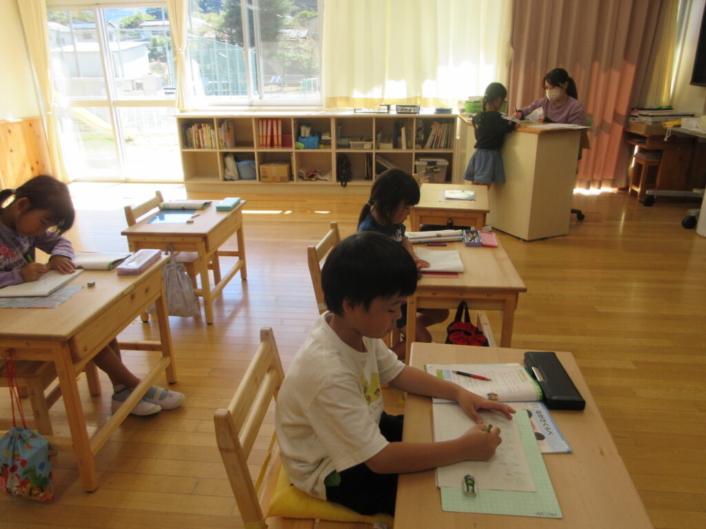 2組国語。漢字の読み書きを行いました。3年生の漢字にチャレンジしました。