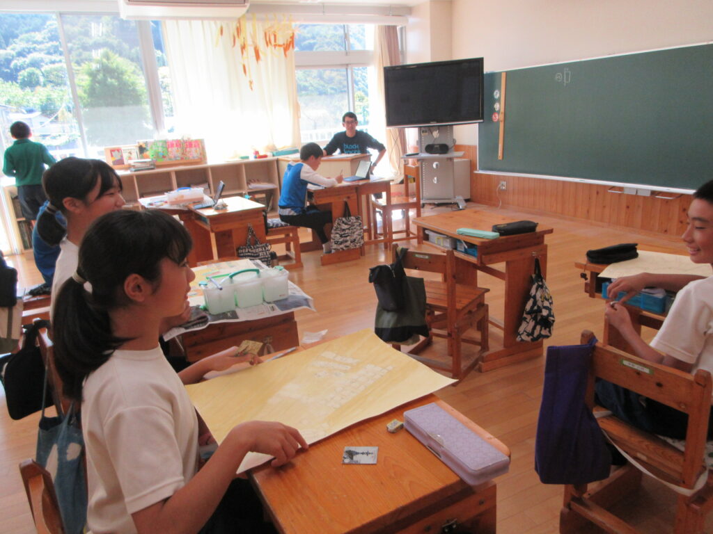 6年生図工。風景画を仕上げていました。みんな丁寧に色塗りや下描きを行っていました。