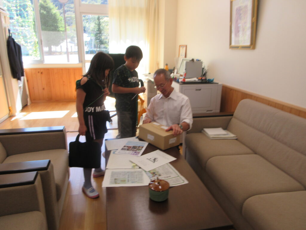 校長室。2年生がかけ算になるものを探しに、校長室に来ました。