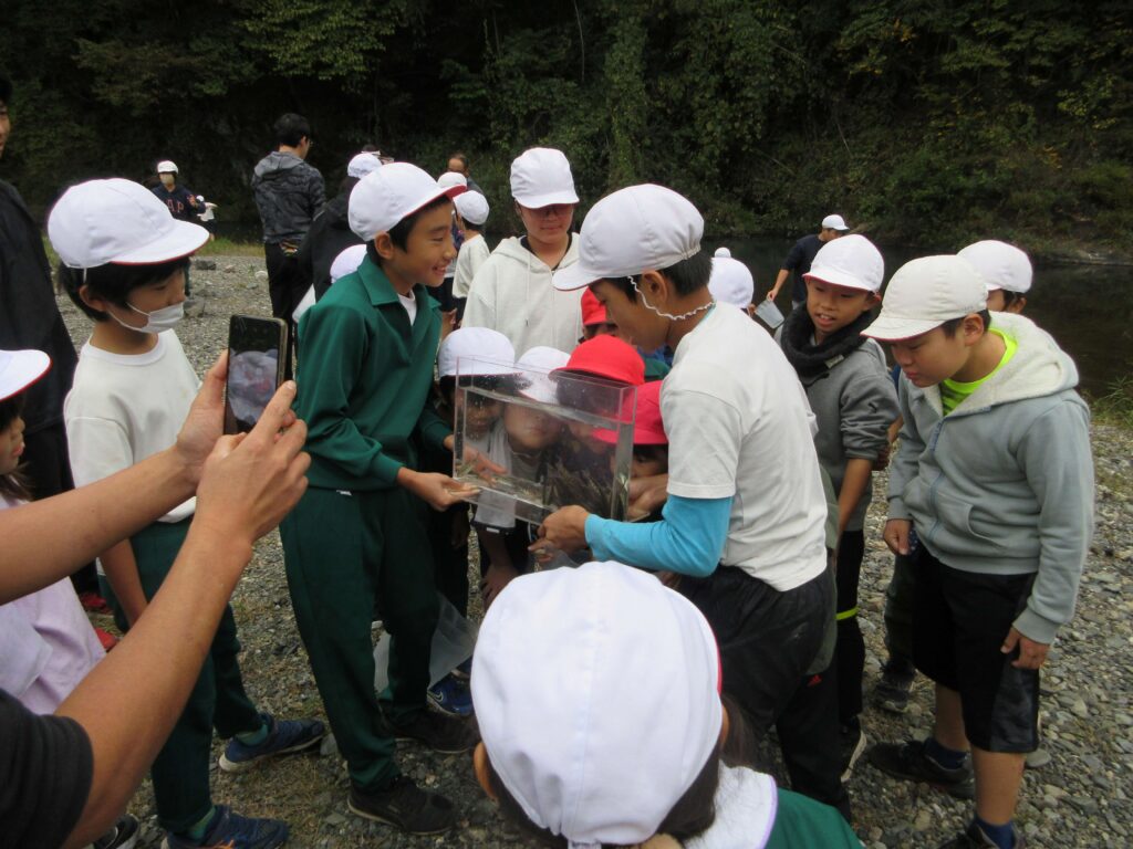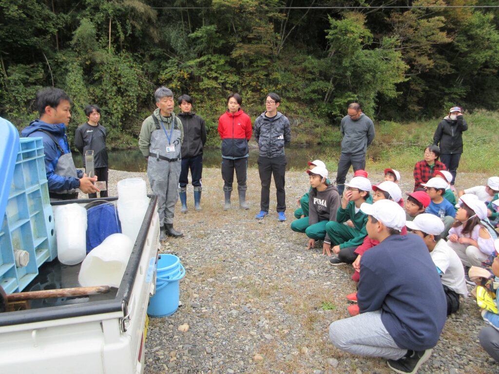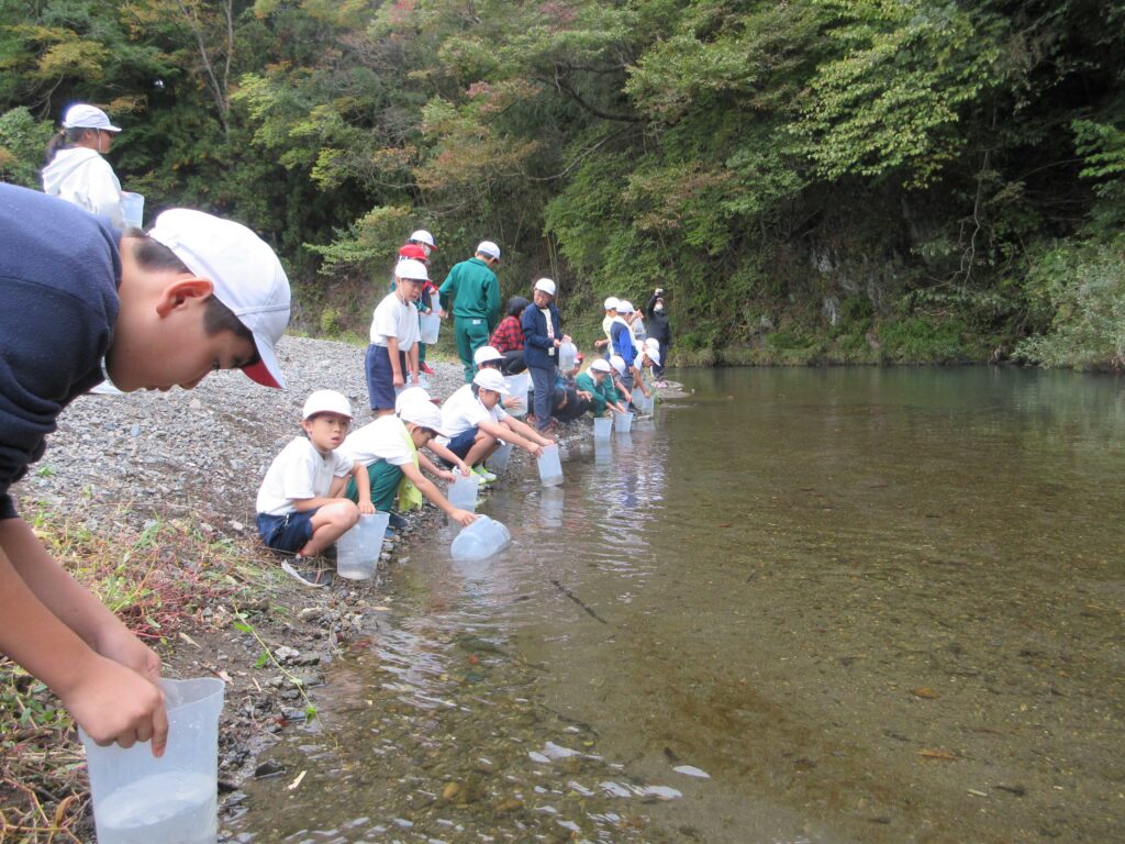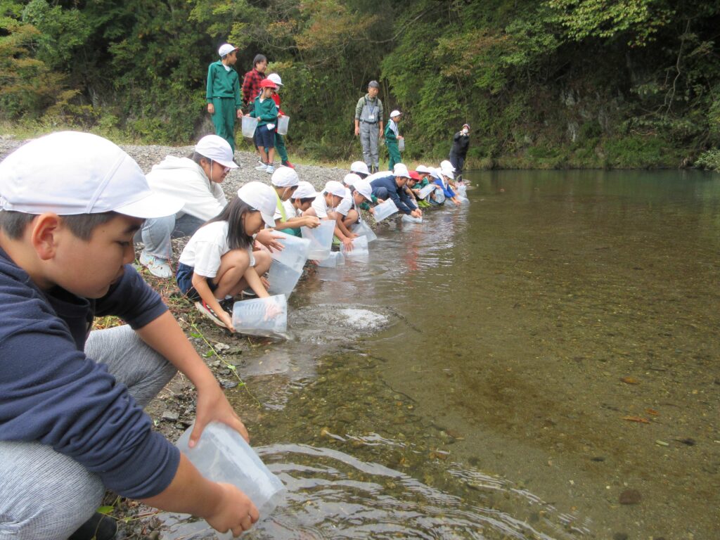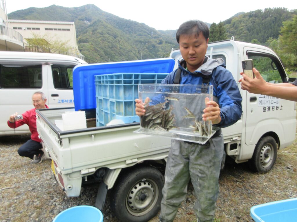 10月22日 やまめの放流 2025年10月22日 | 管理者 上野村漁協の方と一緒にやまめの稚魚を放流しました。神流川には、やまめ、いわな、あゆ、うぐい、かじかなどの魚が生息しています。今年もたくさんの釣り人に来村していただき、釣りを楽しんでもらいました。来年度以降もすべての釣り人に楽しんでもらうために、稚魚を放流しています。また、釣りのルールもみんなで確認しました。特に釣りができる期間を必ず守ることが重要であると教わりました。