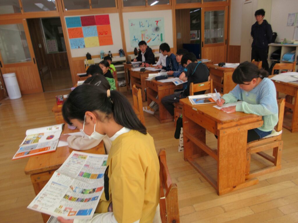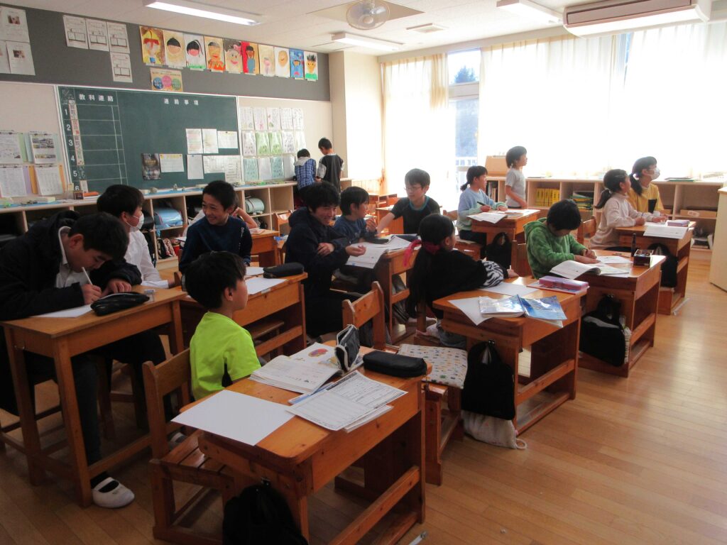 10月24日 3年生国語 2025年10月24日 | 管理者 今日の国語は、6年生と合同で俳句づくりに挑戦しました。五七五の十七音で作る、季語を入れる等のきまりを確認し、秋をテーマに創作しました。6年生がコーチ役を務めて、3年生にアドバイスしていました。