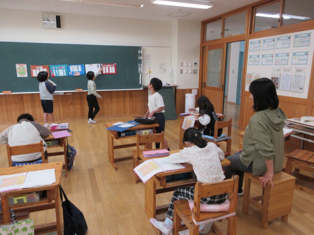 2年生国語。説明文の学習を行いました。「順序」「数字」等の説明するコツをつかって説明文を書きました。手作りのおもちゃを題材にして、各自がおもちゃを選び、実際に作ってから説明文を書きました。
