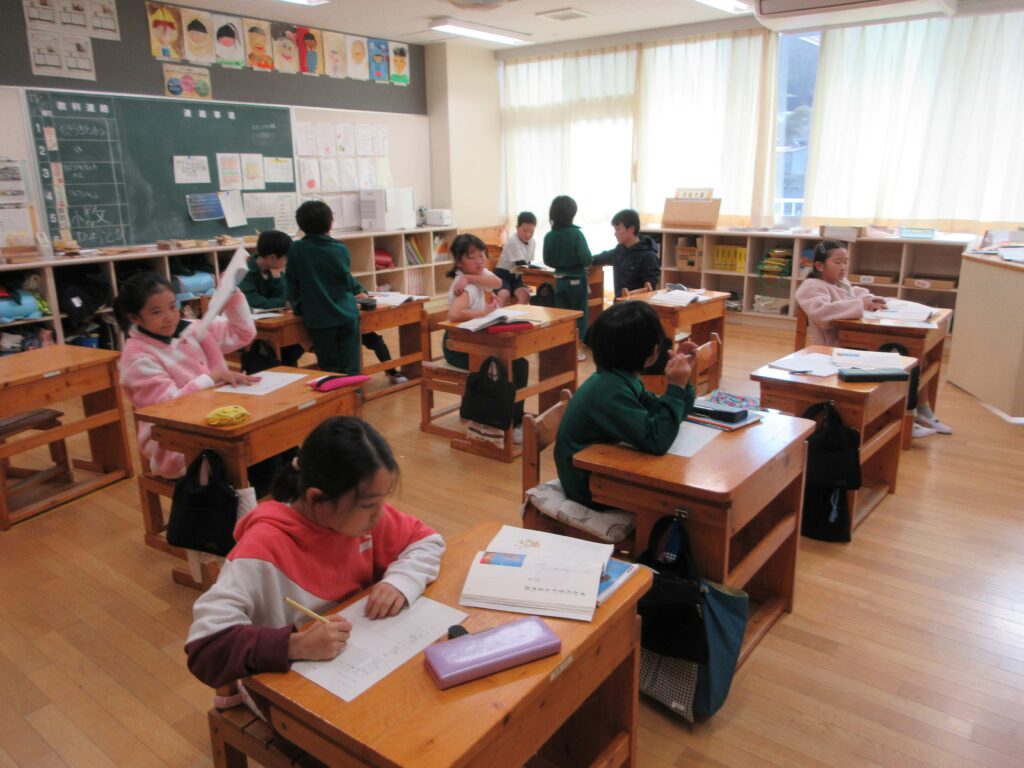 4年生国語。近日行われる漢字検定に向けて、2学期に学んだ漢字のテストを行いました。