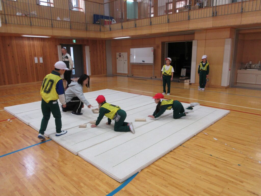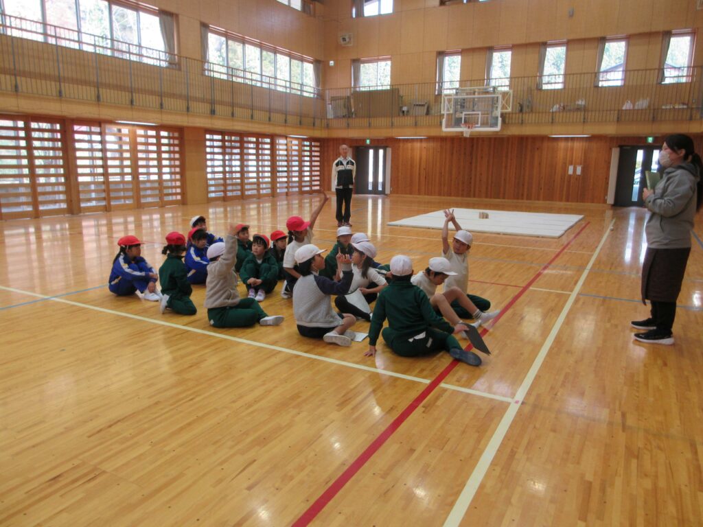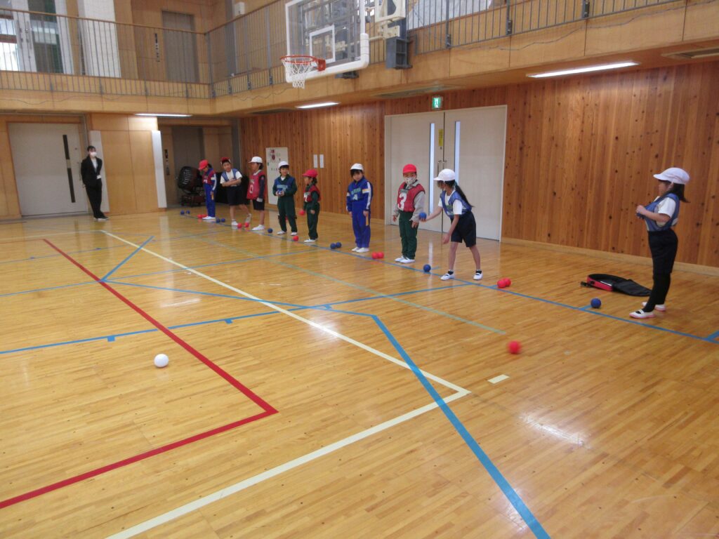 1・2年生が万場小の児童とスポーツ交流会を行いました。ボッチャとモルックを行いました。お昼は、みんなで上野小学校の給食を食べます。