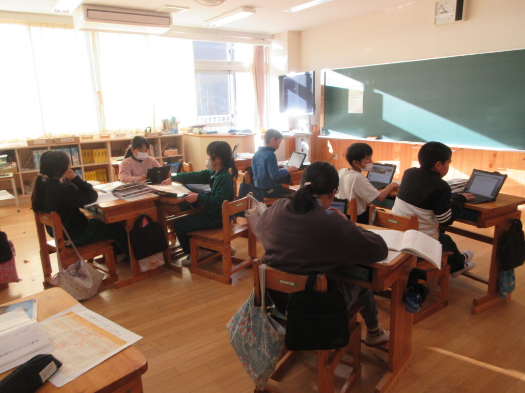 4年生国語。「未来につながる工芸品」の学習を行いました。説明文で学んだことを生かして、工芸品を説明するリーフレットを作っていました。