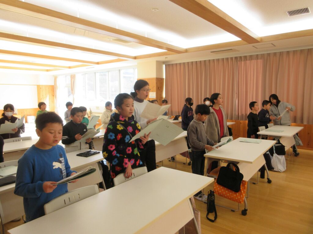 3・4年生音楽。「世界を旅する音楽室」の合唱に取り組んでいました。1・2年生が考えた振りを入れてこの後練習していました。