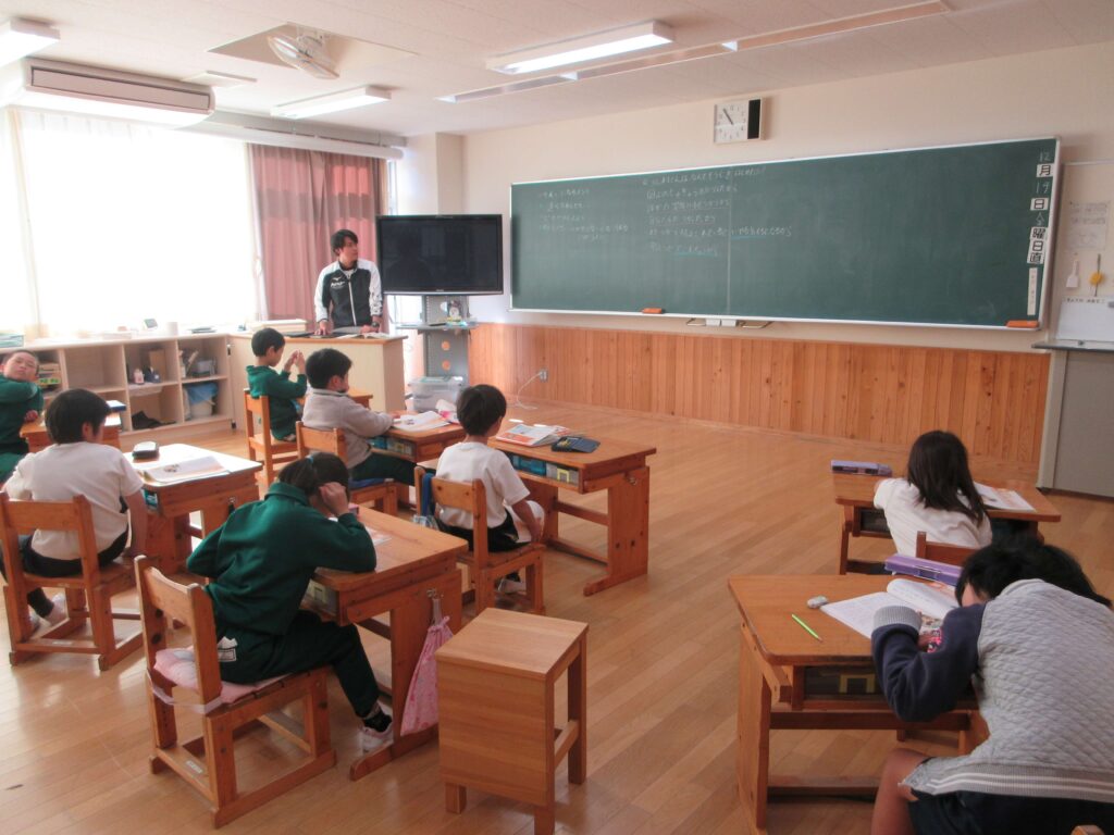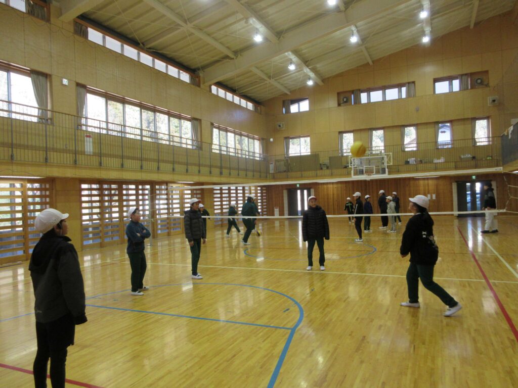 5・6年生体育。バレーボールに取り組んでいました。この時期の体育館は、ヒーターを入れても寒く、まるで冷蔵庫のようです。