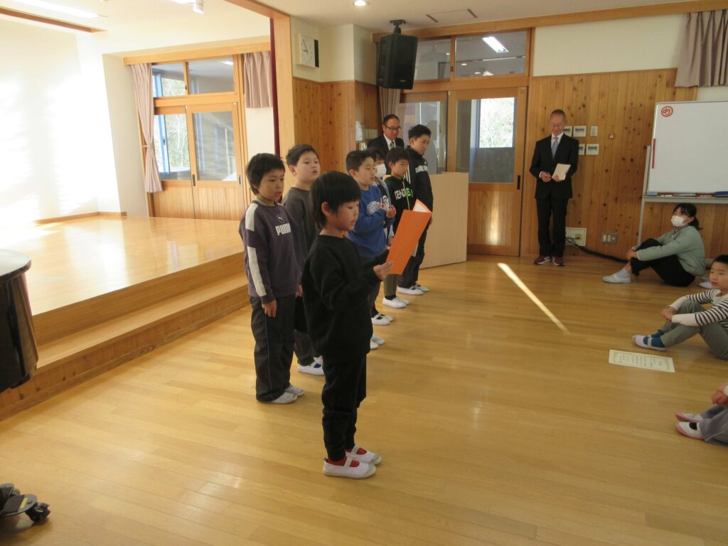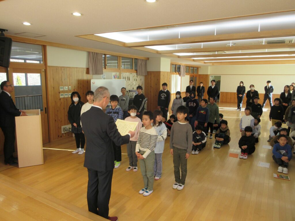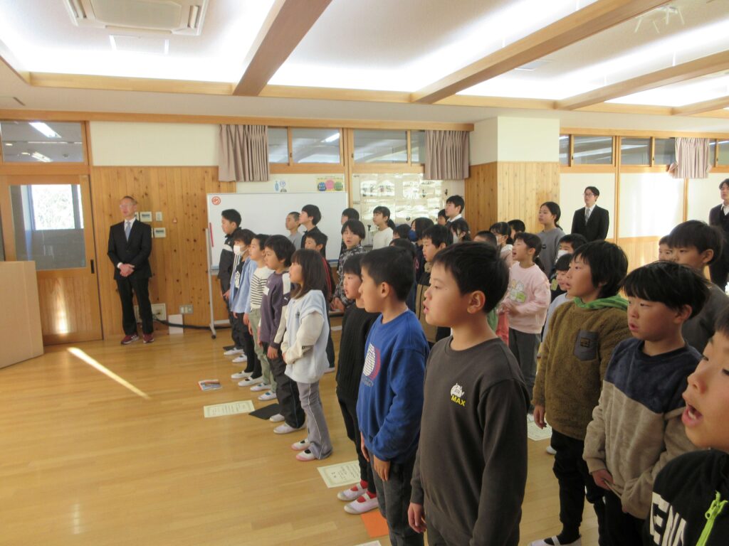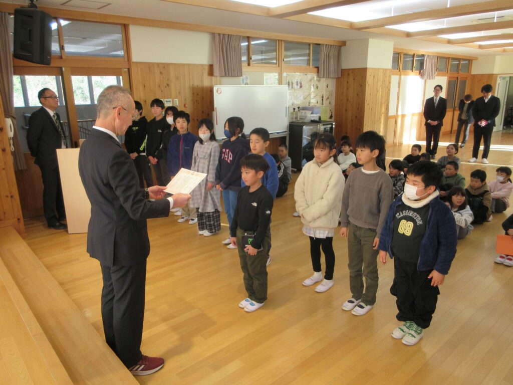 表彰と2学期の振り返りを行った後、2学期終業式を行いました。校長先生からは、何か一つを達成すると力が付いてまた次に向かおうとするやる気につながる、みんなは着実に力が付いている、自信をもってほしいとのお話がありました。1月7日に元気にお会いしましょうと伝えていました。