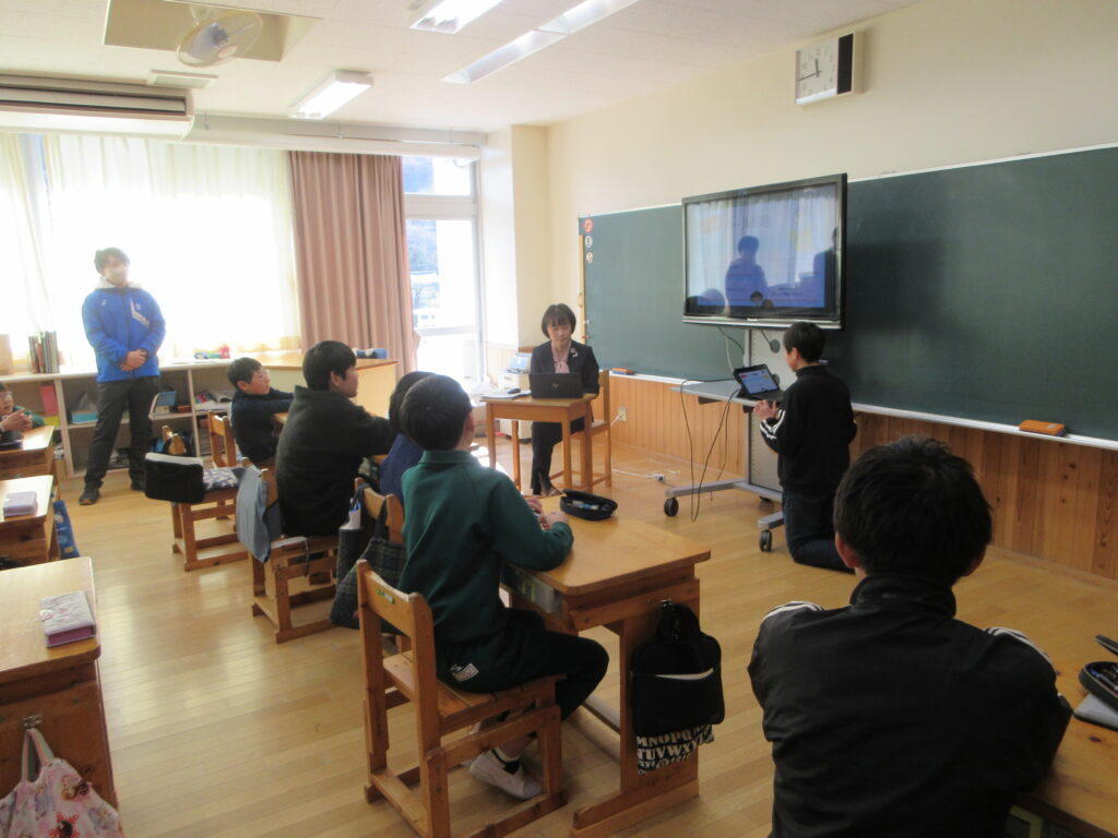 農林水産省から審議官様をお招きして、環境の授業を行いました。カーボンニュートラル、サーキュラーエコノミー、生物多様性などのキーワードをもとに、これからの環境について考えました。また、上野村村長や役場の方にも児童の上野村に対する質問について教えていただきました。