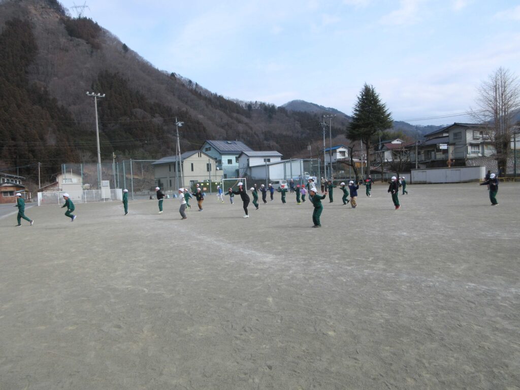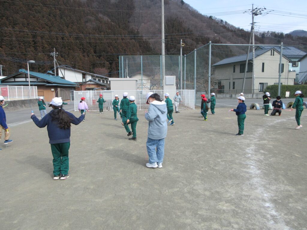 2月16日 体育集会 2026年2月16日 | 管理者 今日の昼活動は、体育集会を行いました。寒い時期でも運動しようと体育委員が企画しました。自分の挑戦したい跳び方のグループに入り、3分間飛び続けました。その後は、縄跳びをしながらだるまさんが転んだを行いました。来週は、鬼ごっこの予定です。 体育委員 かけ足跳び 前跳び 後ろ跳び 二重跳び だるまさんが転んだ