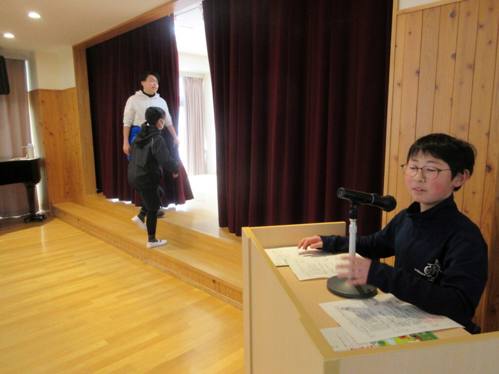 2月26日 6年生を送る会準備 2026年2月26日 | 管理者 毎年5年生が6年生を送る会の運営を行っています。司会、あいさつ、音響など役割を分担して準備を進めています。6送会を明日に控え、今日は各学年がリハーサルを行いました。明日に向けて入念に練習していました。