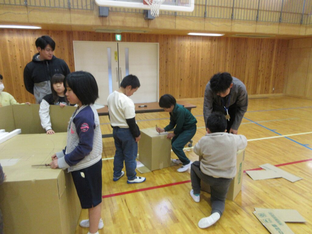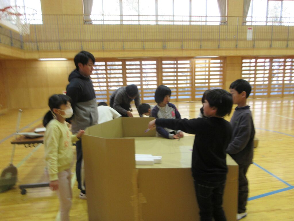 3月9日 学校の様子 2026年3月9日 | 管理者 2年生の図工は、体育館で工作を行いました。ダンボールを組み合わせて大きな家を作っていました。まずはくっつけて、その後切って穴を空けていきます。児童が入れるくらいの大きな家ができました。 2年生図工 2年生図工 2組理科 3年生理科 4年生国語 5年生社会 6年生社会 1年生図工