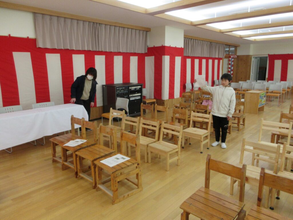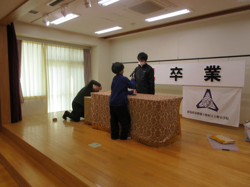 3月23日 卒業式準備 2026年3月23日 | 管理者 明日の卒業式の準備を4年生と5年生が行いました。音楽室の紅白幕、ステージ、祝電、外のお花などを協力して準備しました。きれいな会場が仕上がり、明日の卒業式を迎えます。