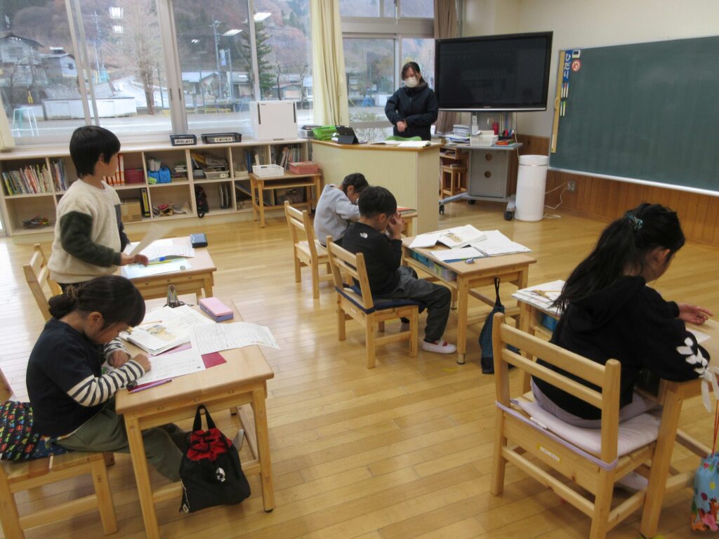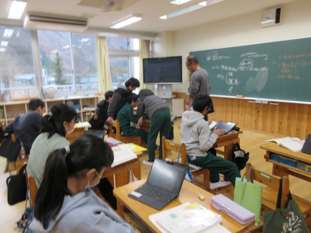 6年生国語。「鳥獣戯画」の学習を行いました。筆者の読み取りに対して、自分の読み取りと比べていました。