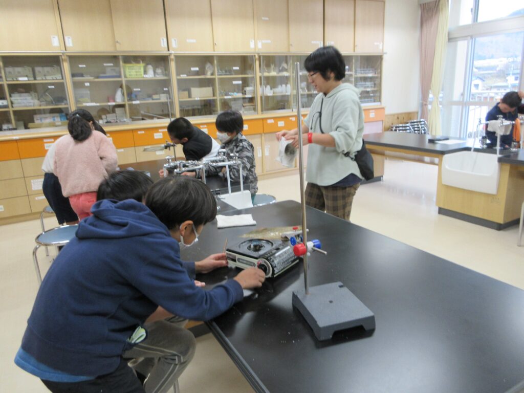 4年生理科。「もののあたたまり方」について学習しました。棒と板で端からあたためるときと真ん中からあたためるときと比べていました。