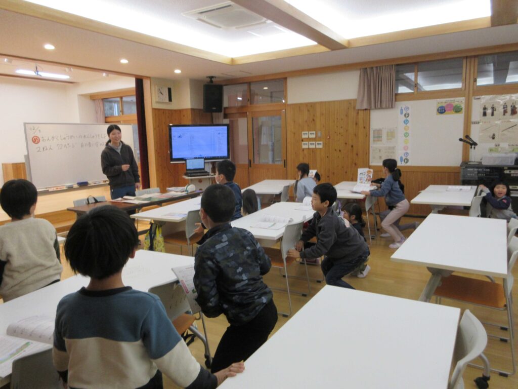 1・2年生音楽。「あの青い空のように」の合唱を行いました。振りをつけて、工夫して歌っていました。