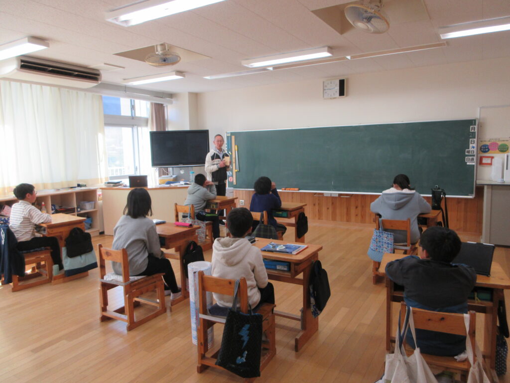 午後5年生教室では、校長先生が国語の授業を行っていました。東日本大震災の後に東北を訪れた経験を教科書の内容と絡めて、話をしていました。6年生教室では、栄養教諭が家庭科の授業を行いました。3月に6年生が考えた献立で実際に給食が提供されるそうです。栄養のバランスを考えた献立を提案し、決定していくそうです。