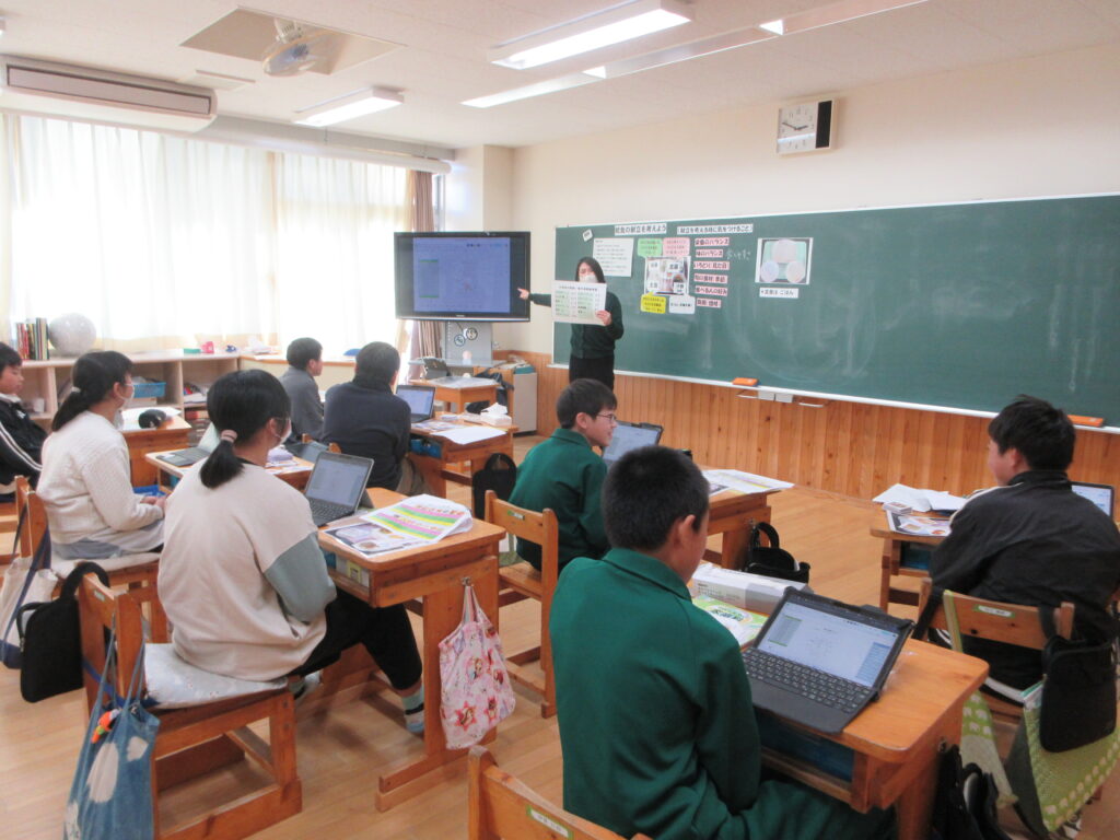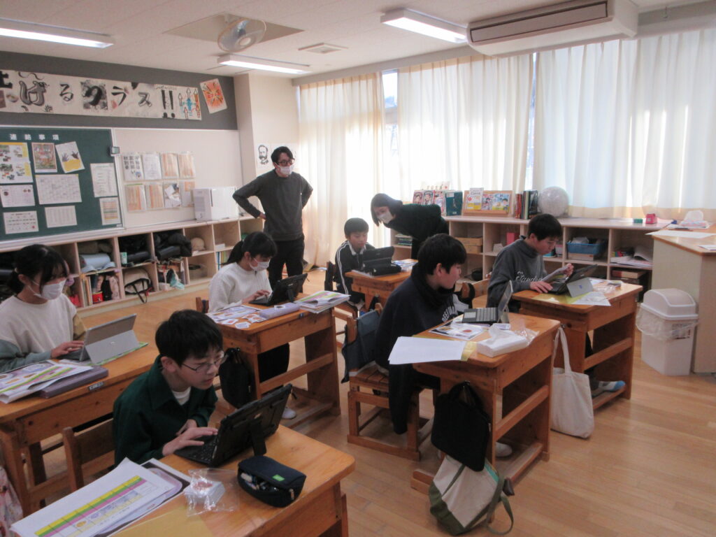 昨日の午後は雪が舞い、とても寒かったですが、本日は快晴で教室は陽の光がよく入り、ぽかぽかです。みんな元気に学習に取り組んでいます。