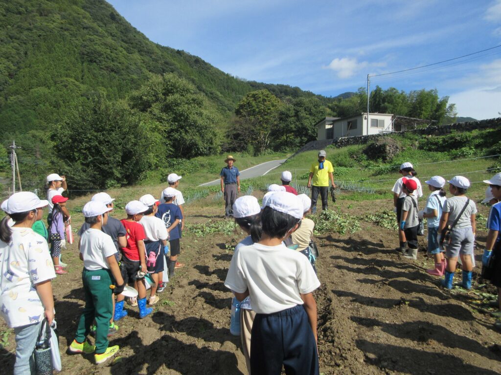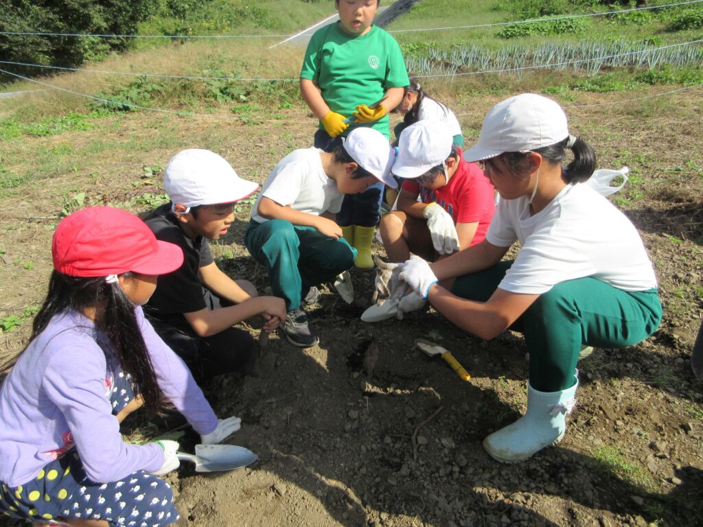 地域の方の畑を借りて育てていたさつまいもを本日収穫しました。まずは、畑を所有している方からご挨拶をいただき、収穫がスタートしました。今年のさつまいもは、丸くて大きいものが多かったです。熟成させて11月の焼き芋集会に臨みます。