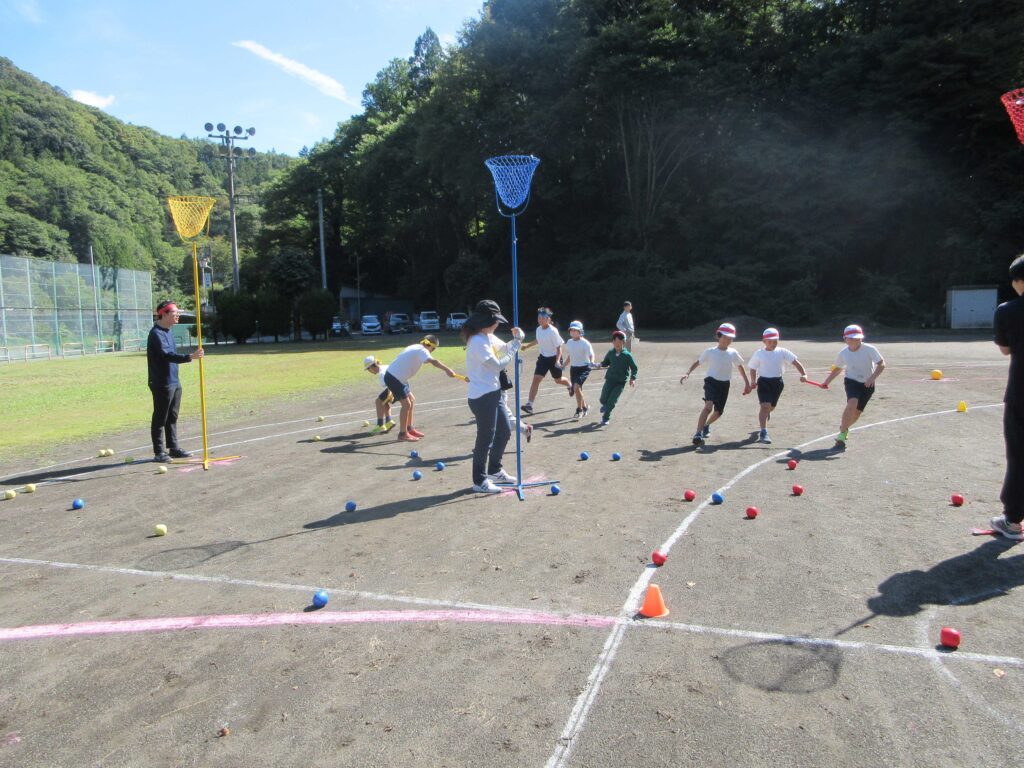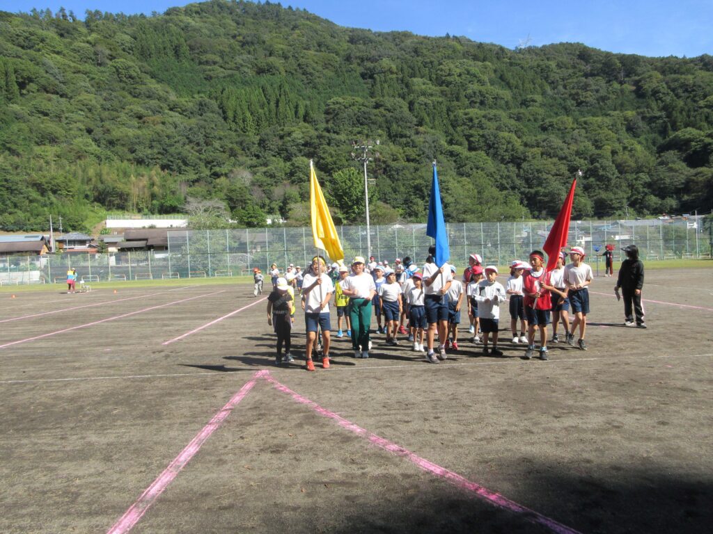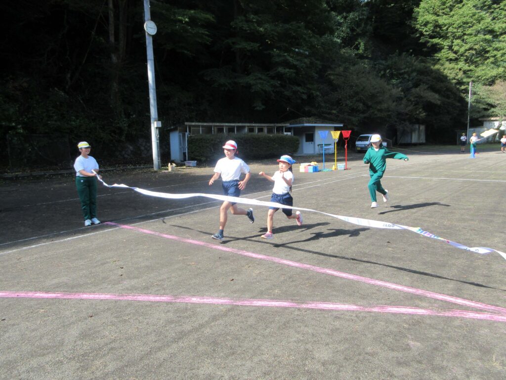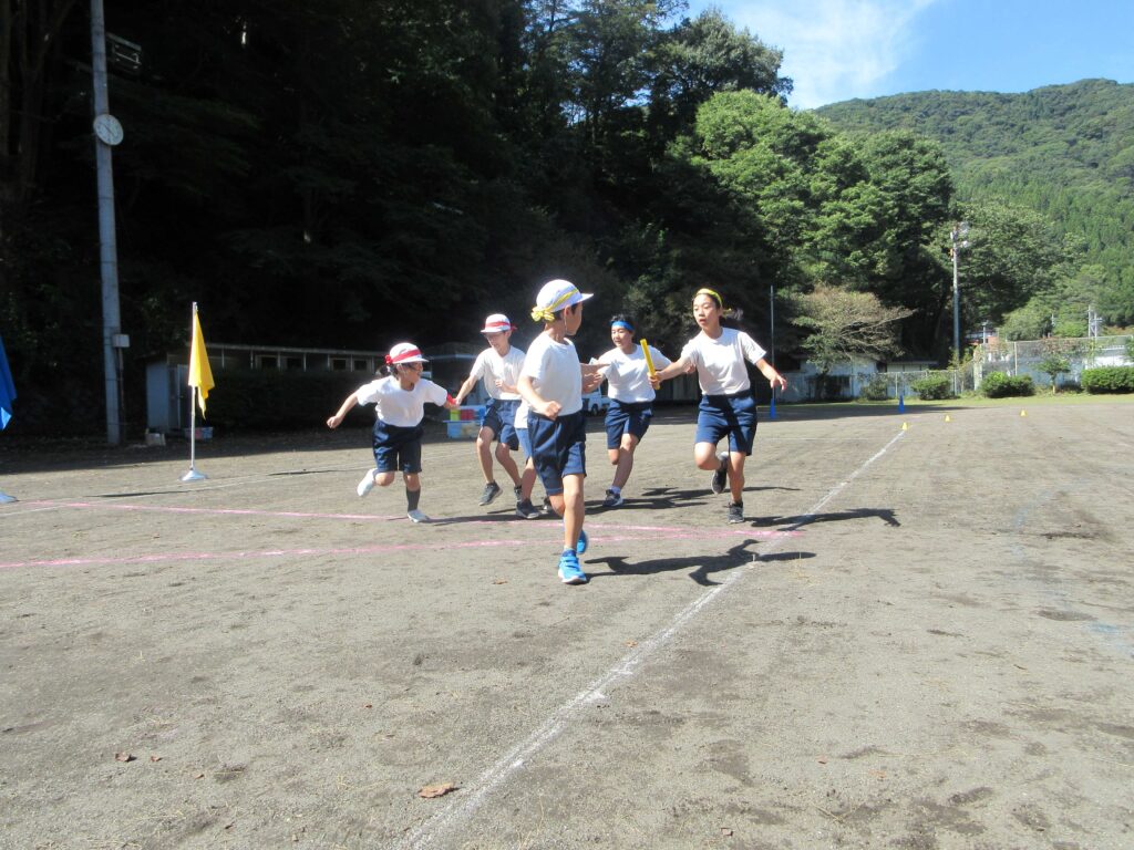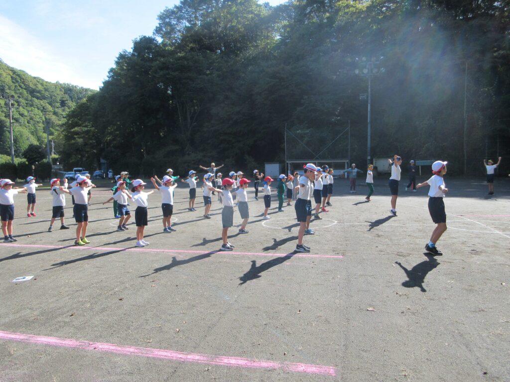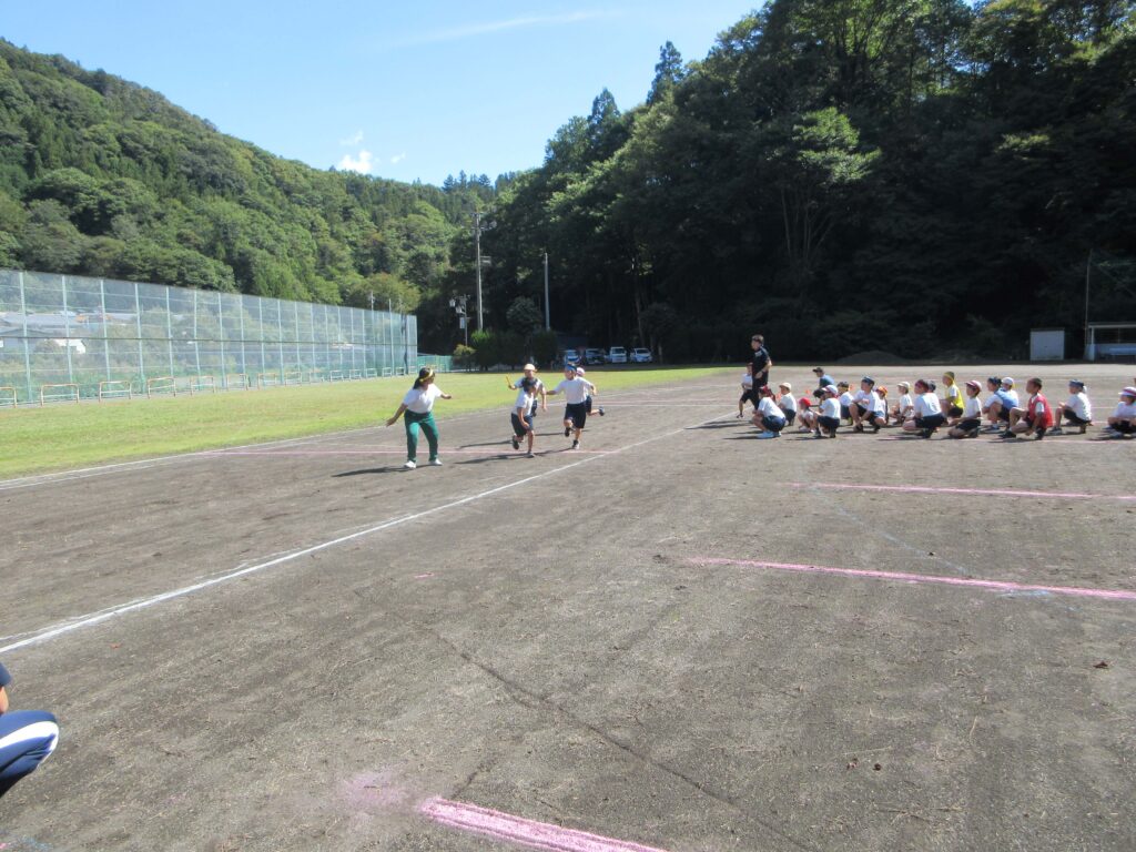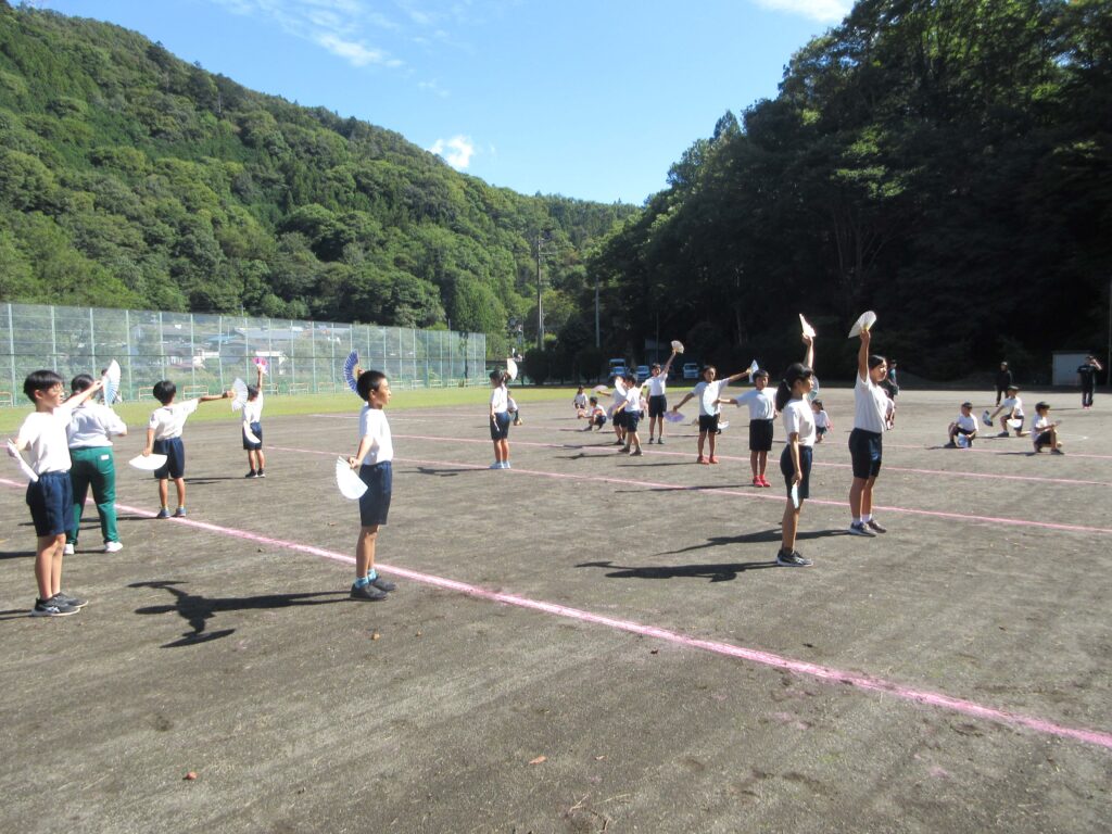 なんとか天気がもち、上野村体育祭が実施されました。村民、小学校、中学校、保育園、参加した全ての人が全力で楽しみました。ラジオ体操、徒競走、遊競技、ダンス、リレー、すべての場面で児童の頑張る姿が見られました。競技終了まで全力で自分の限界にチャレンジし、達成感を味わいました。勝敗にかかわらず、どの団も一致団結して自分のため、団のため、上野小学校のため、上野村のために力を発揮しすることができました。
